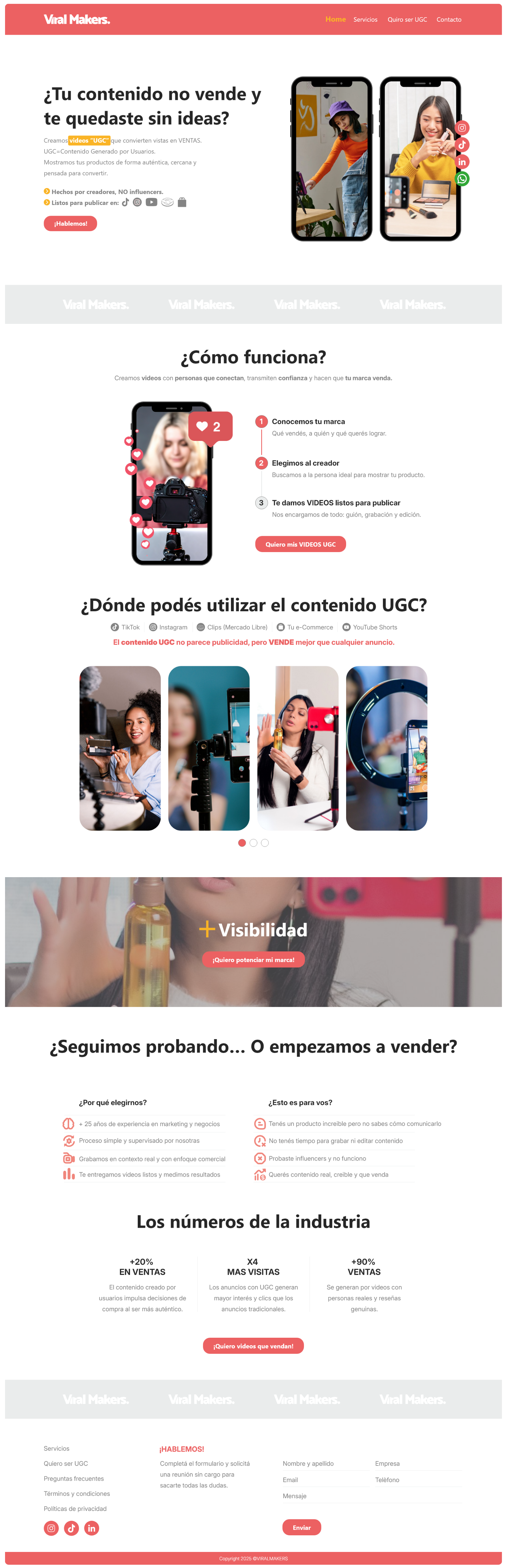Reto: Necesitaban construir una identidad visual completa que transmitiera dinamismo e innovación en la creación de contenido UGC. Solución: Desarrollé el logotipo, branding completo y piezas gráficas para redes sociales y campañas digitales. También diseñé y desarrollé su sitio web en WordPress. Resultado: Una marca coherente y moderna que fortaleció su presencia digital y facilitó la captación de clientes en el mercado de marketing.